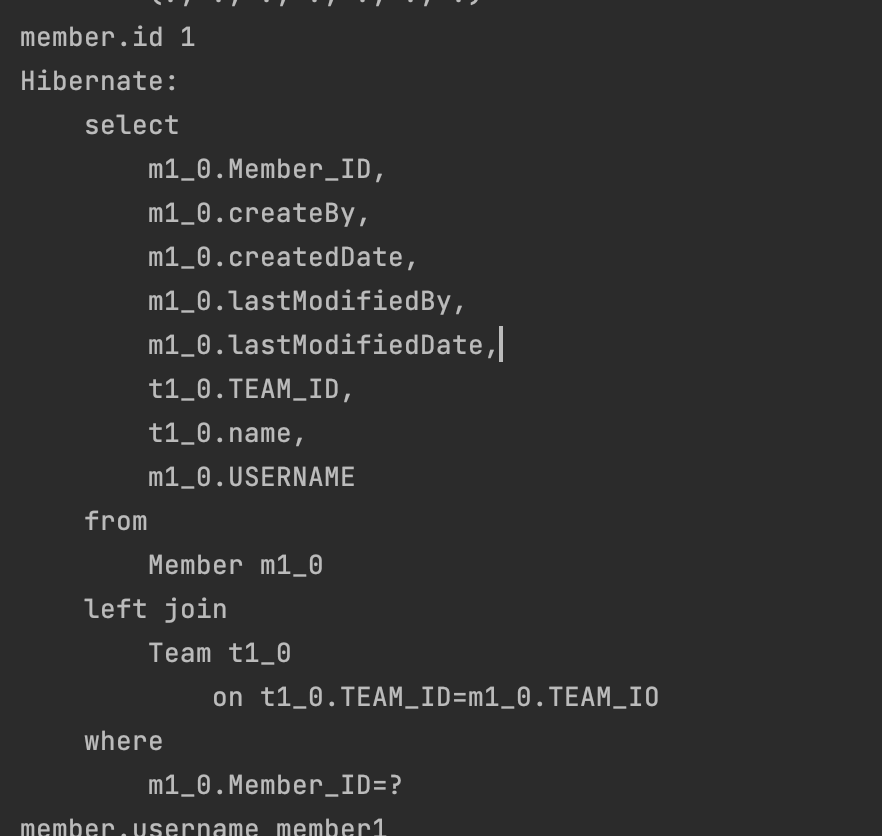 결과를 자세히 보면, id가 출력되고 나서 select 쿼리가 나가게 되는데 이건 id는 이미 가지고 있으니 select 쿼리문을 보내는 것이 아니고 이후에 해당 정보를 가져오기 위해 select 쿼리가 발생하는 것이다.