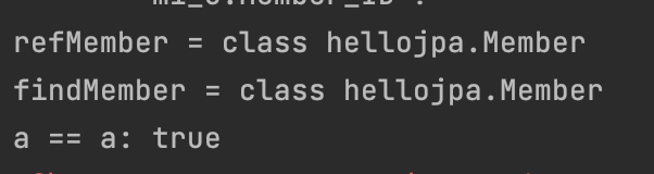 반대로 프록시를 먼저 하고 엔티티를 find로 가져오게 되더라도 같은 트랜젝션에서는 같은 것을 항상 보장해 주기 때문에 find로 가져온 것이 프록시로 참조되어 있는 것을 알 수 있다.