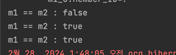 위처럼 코드를 돌렸을 경에 프록시랑 엔티티랑 다른 것이므로 == 비교를 하면 false가 발생한다.