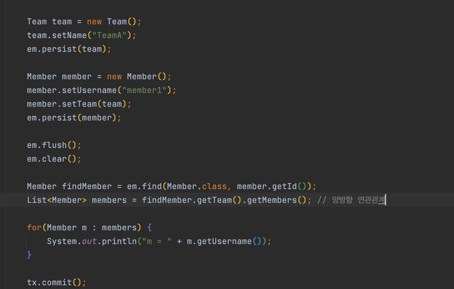 사실 객체에서의 양방향 관계는 서로 다른 단방향 관계 2개이다.