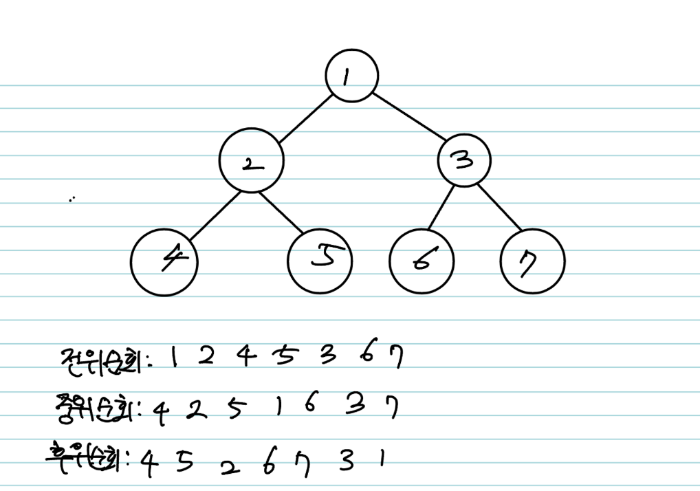 - 전위순회(preorder) : 트리를 순회할 때 노드 - 왼쪽 자식 - 오른쪽 자식