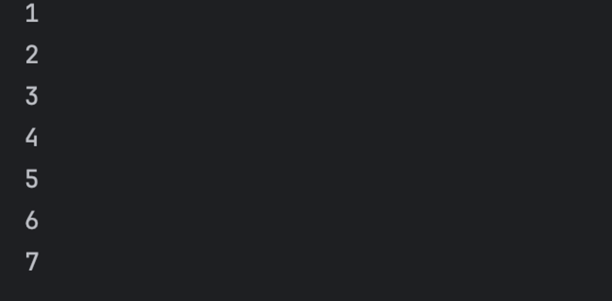 스택에는 그럼 7 → 6 → 5 → 4 → 3 → 2 → 1 이렇게 있고 스택은 LIFO의 특성을 가지고 있기 때문에 1부터 스택에 나와서 출력을 하게 됩니다.