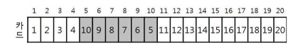 1부터 20까지 숫자가 하나씩 쓰인 20장의 카드가 아래 그림과 같이 오름차순으로 한 줄로 놓 여있다. 각 카드의 위치는 카드 위에 적힌 숫자와 같이 1부터 20까지로 나타낸다.
